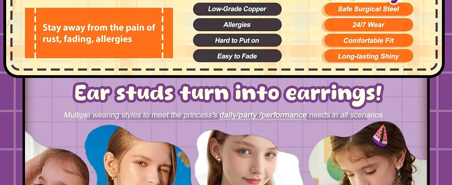 【Quality Material】: 316L Stainless Steel Solid and Durable Very Healthy and Comfortable to Wear.